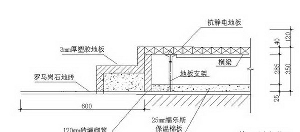 進(jìn)入機(jī)房架高地面的踢腳臺(tái)應(yīng)具有防水隔潮、美觀大氣、堅(jiān)固實(shí)用等特點(diǎn),本項(xiàng)目中,可以使用120mm磚墻砌筑以隔離機(jī)房架高地面,設(shè)一級(jí)臺(tái)階,臺(tái)階的寬度以300mm為宜,以砌素砼而成,根據(jù)實(shí)際需要,在臺(tái)階表面鋪設(shè)防水材料,如大理石、丁紋鋼板、塑膠地板等。